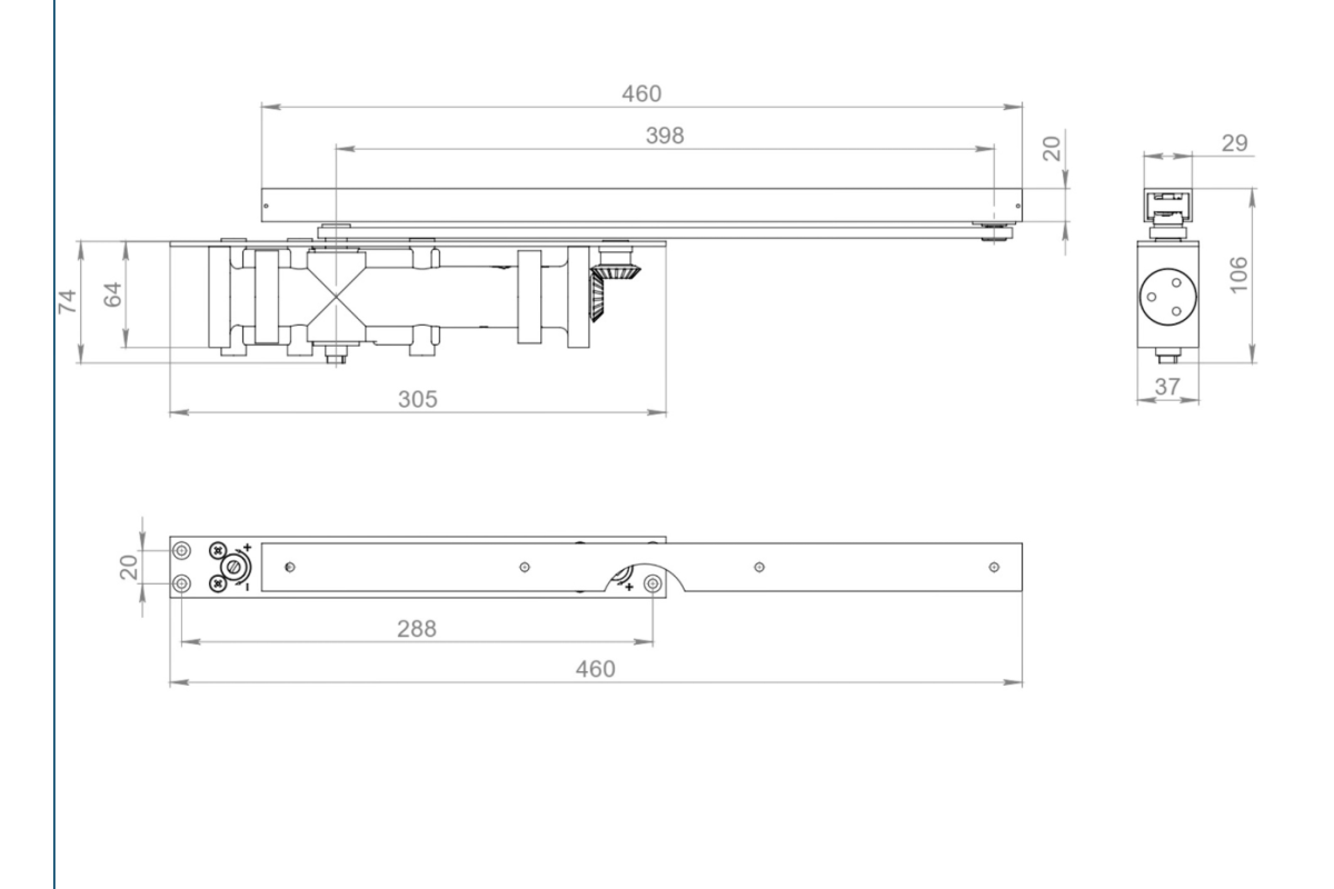 Доводчик скрытой установки DCH2-06 (25-120 кг) предназначен для автоматического закрывания распашных металлических, деревянных, профильных и других дверей. Корпус доводчика может устанавливаться как в дверное полотно, так и в дверную коробку. При закрытой двери доводчик абсолютно невидим. Подходит для установки на двери левого и правого открывания. ФОП (фиксация открытого положения) осуществляется специальным стопором, который устанавливается в направляющую. Стопор идёт в комплекте поставки. Доводчик DCH2-05 (25-120 кг) подходит для массы двери 25 - 120 кг. Посадочные размеры: 288х20. Работоспособность более 500 000 циклов. Режим эксплуатации от -45 до +60 градусов. Угол открывания до 130 градусов в соответствие с чертежом. Устойчивость к коррозии в соляном тумане более 250 часов. В комплектацию входят: корпус доводчика с монтажной планкой, направляющая с фиксатором, штанга, комплект крепежа, подробная инструкция по установке. Цвет: алюминий. Гарантия : 5 лет.