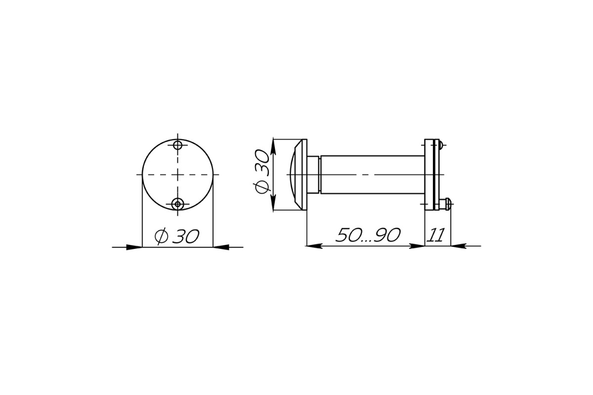 Глазок дверной противопожарный FP.DVG 3/90-50/S - огнестойкий, предназначен для использования в противопожарных металлических и деревянных дверях толщиной от 50 до 90 мм.