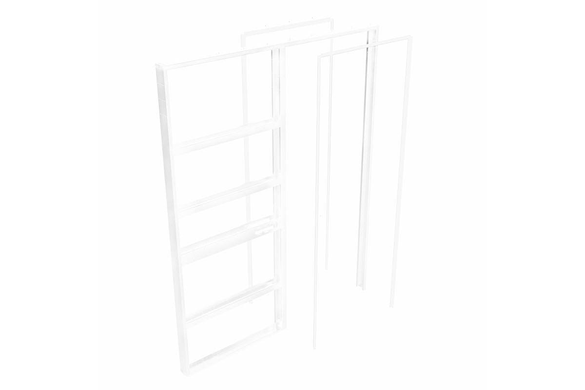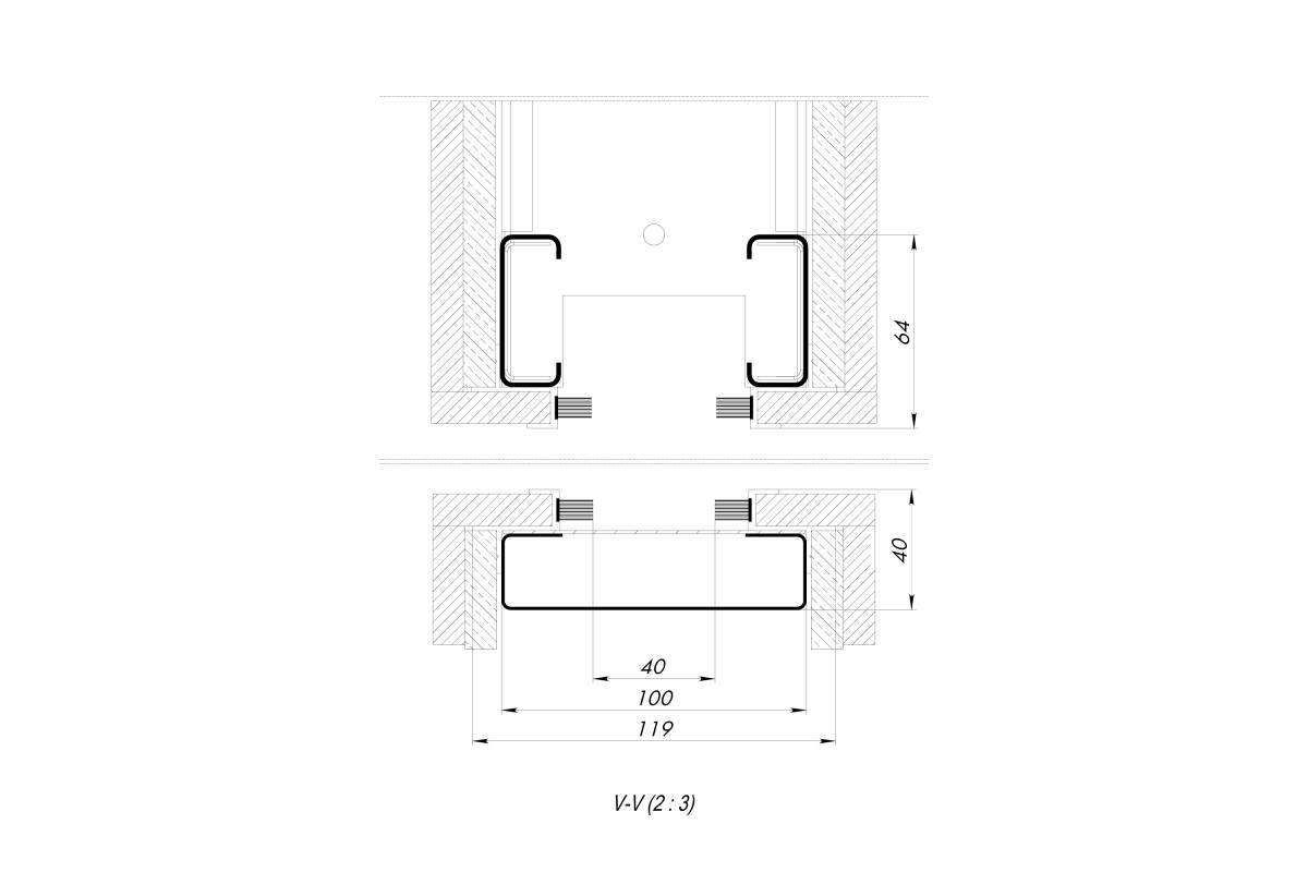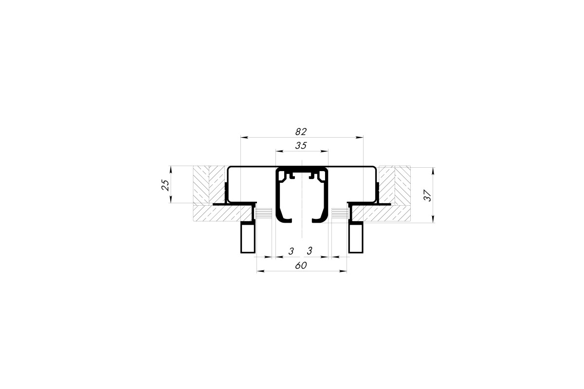 Специальный профиль устанавливается в пенале с обрамлением (без наличников). Проем обшивается гипсокартоном для последующей отделки чистовыми материалами (обоями, краской или декоративной штукатуркой).