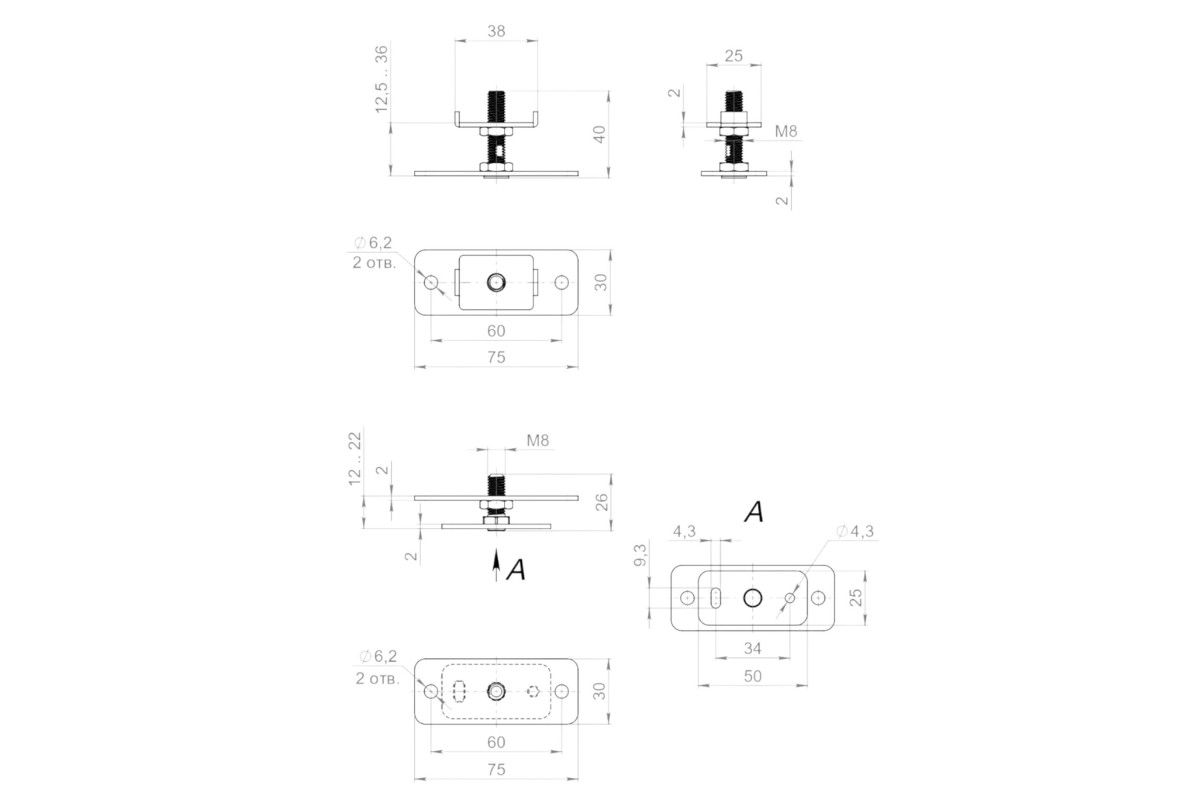 Комплект монтажных пластин для установки дополнительного стационарного полотна в систему Comfort-PRO.PROF\Telescope. Материал изготовления: Сталь.