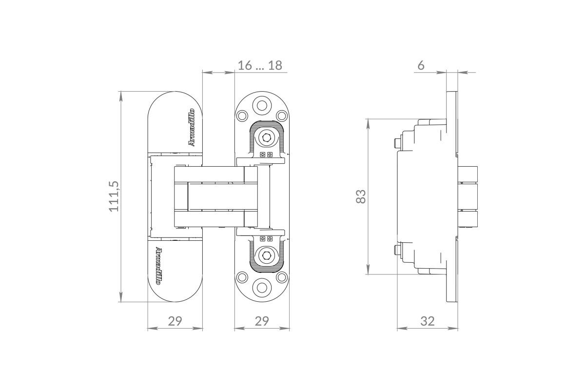 Скрытые петли Armadillo U3D6002 из коллекции Urban - эксклюзивная разработка компании - подходят для полотен с левым и правым открыванием. Они невидимы на закрытой двери и обеспечивают угол открывания до 180 градусов. Бесшумны и плавны в работе за счет нейлоновых вставок на подвижной части конструкции. Легко регулируются в трех плоскостях уже после завершения монтажа.