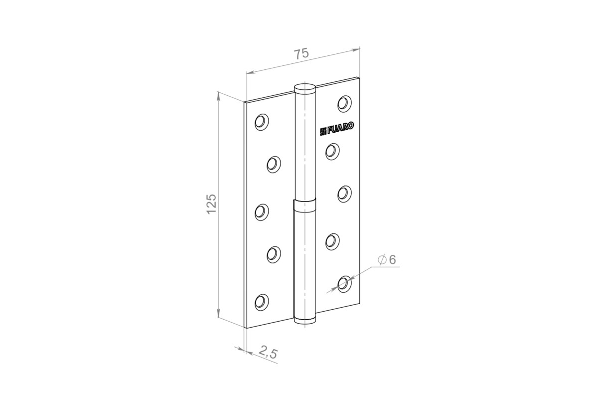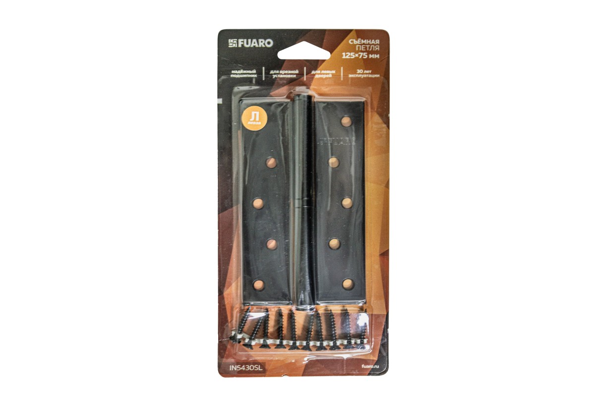 Съемная дверная петля Fuaro 413/BL-5 правая изготовлена из стали, подходит для дверей правого открывания. Гальваническое покрытие прошло тест на устойчивость к коррозии в соляном тумане - более 96 часов, что соответствует высшему 4 классу стойкости покрытия. Края петель прошли дополнительную полировку. В петле 413/BL-5 установлены подшипник и стальной стержень, что обеспечивает 1 млн циклов открывания/закрывания. Максимальная нагрузка на 2 петли 40 кг, на 3 петли 65 кг. Размер петли: 125x75x2,5. Цвет: бронза. Саморезы в комплекте. Гарантия: 5 лет. Упаковка: блистер.