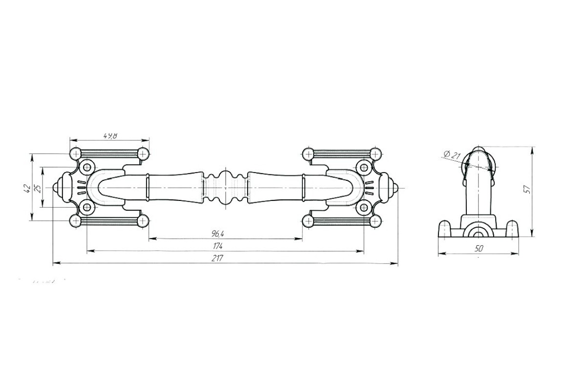 Ручка-скоба РС-1 выполнена из алюминиевого сплава. Длина 220 мм.