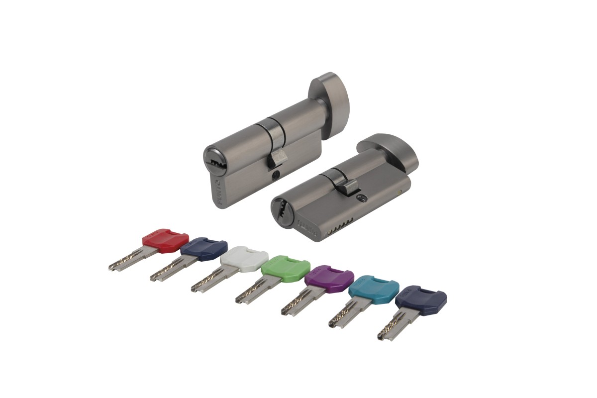Цинковый корпус с латунным ротором, стальной пин от высверливания, защита от бампинга и отмычек, секретность -45 000 комбинаций.