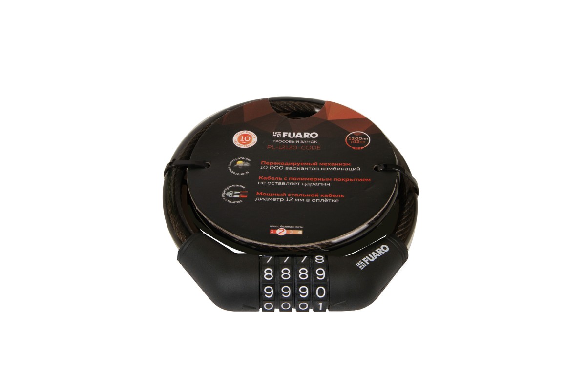 Замок тросовый PL-12120-CODE - навесной замок-автомат с усиленной стальной тросовой дужкой.