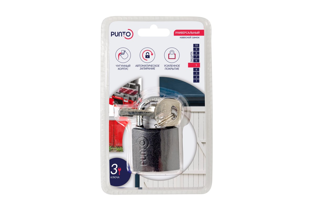 Навесной замок Punto PK-01 предназначен для запирания внутренних и уличных дверей, ворот и других объектов, оснащенных проушинами. Автоматическое запирание, чугунный корпус с антикоррозийным покрытием, закаленная дужка для защиты от спиливания. Манжеты.